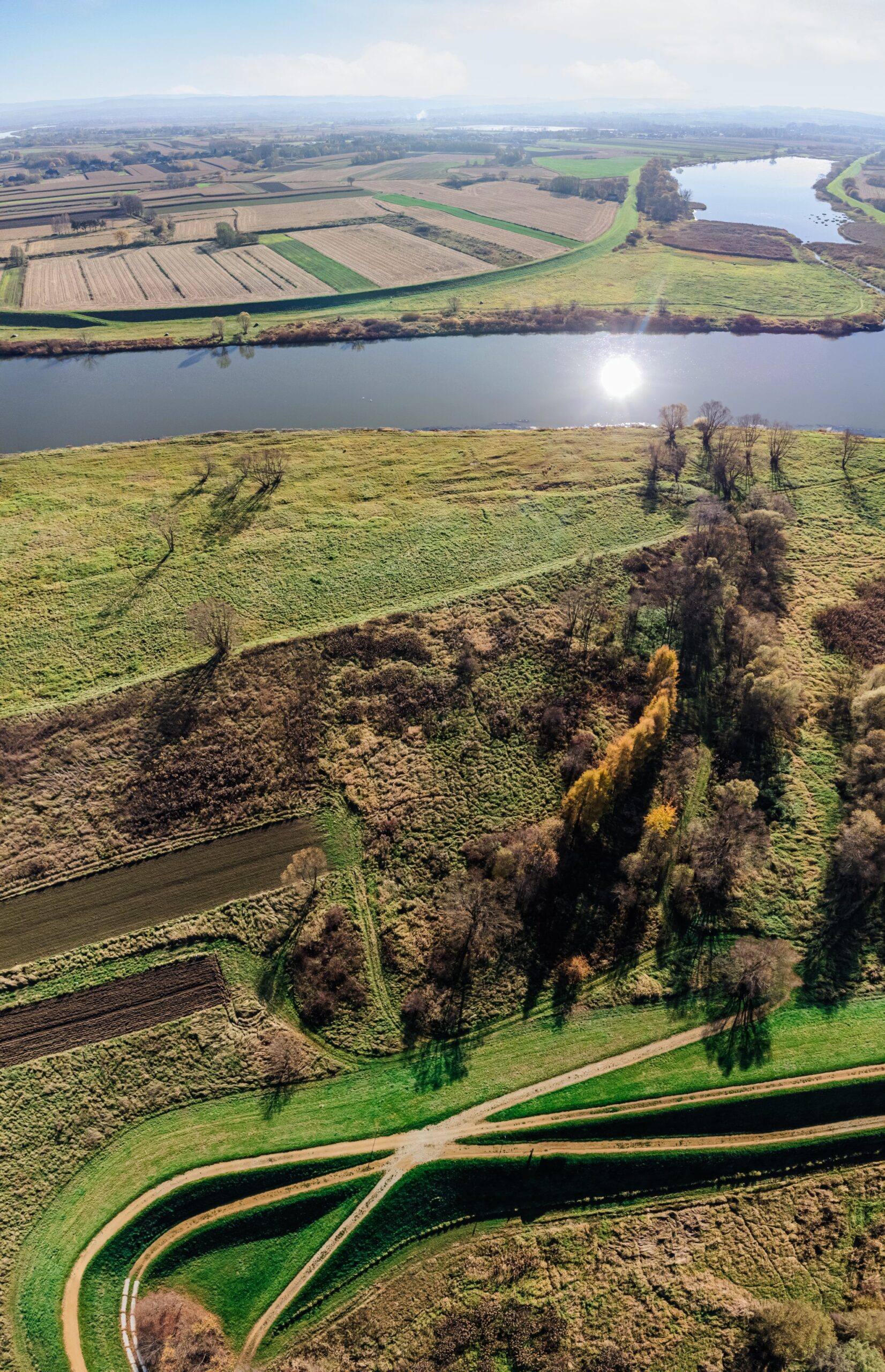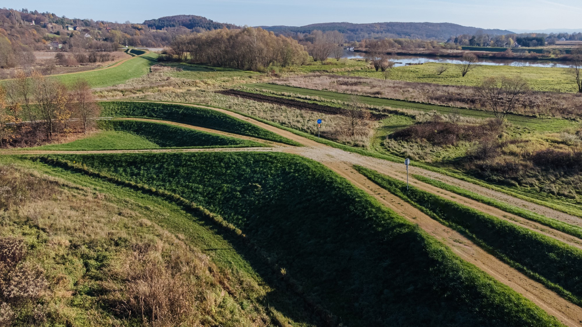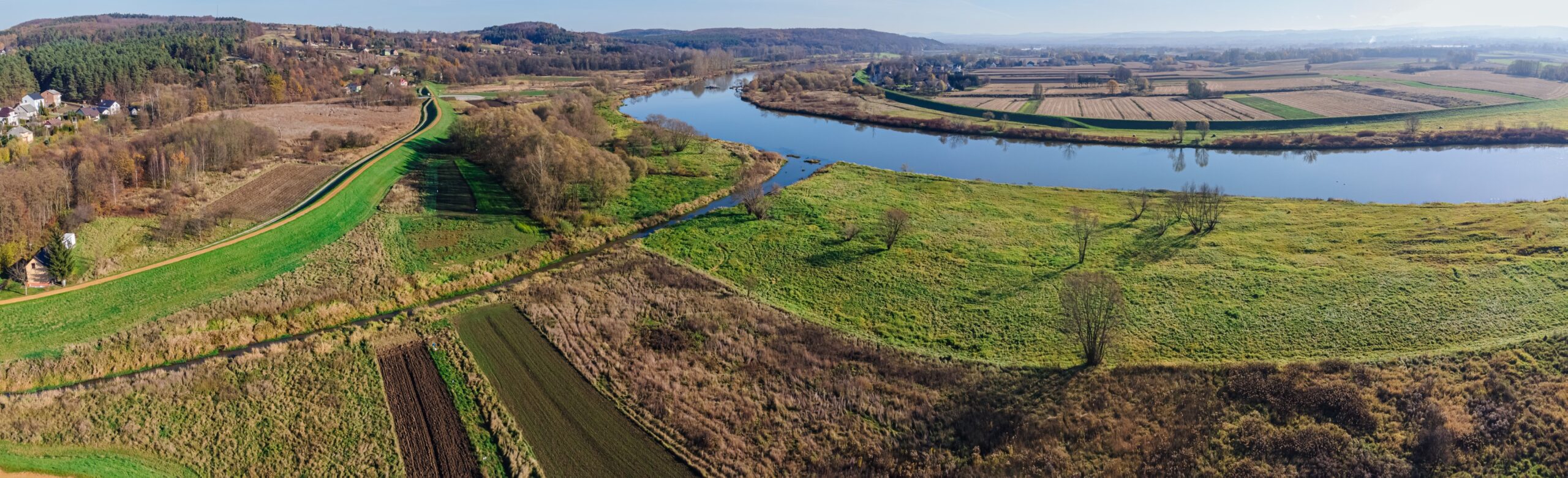 Realizacja prac geodezyjnych przy zabezpieczeniu przeciwpowodziowym doliny Wisły w rejonie Alwerni wymagała rygorystycznego zachowania parametrów wysokościowych. Nasz zespół był odpowiedzialny za precyzyjne tyczenie geometryczne korpusu wałów oraz bieżący monitoring prac ziemnych. W ramach zadania wykonaliśmy gęstą sieć profilowań poprzecznych i podłużnych, niezbędnych do prawidłowego uformowania nasypów oraz uszczelnienia podłoża. Wykorzystanie fotogrametrii niskiego pułapu pozwoliło na stworzenie precyzyjnej dokumentacji powykonawczej, dokumentującej kluczową infrastrukturę chroniącą region przed skutkami wezbrań rzeki.